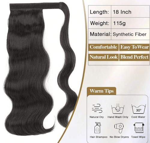18 Inch Everyday Heat Resistant Wavy Synthetic Fiber Ponytail Extension