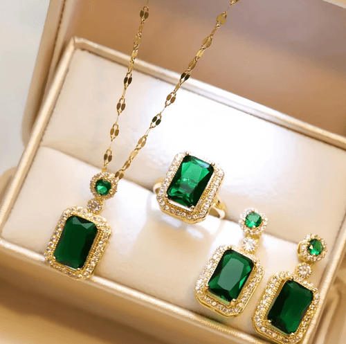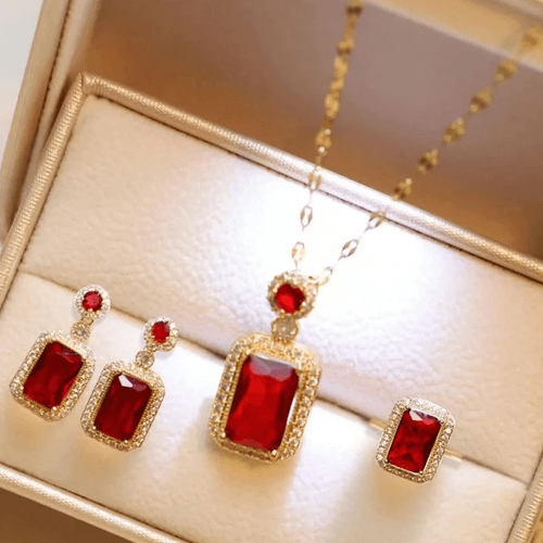 4pcs Deluxe Square Shaped Jewelry Set (emerald, ruby)