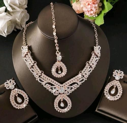 4pcs Elegant Crystal Jewelry Set: Earrings (gold, silver, rose gold)