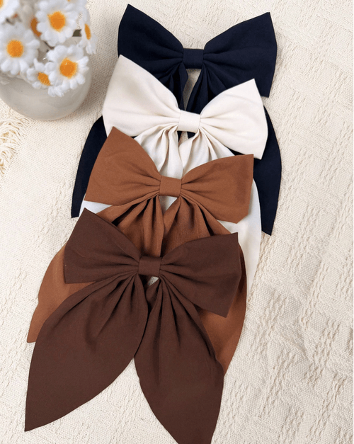 4pcs Set Short Tail Bowknot Hair Clips ( Pastel, Neutrals)