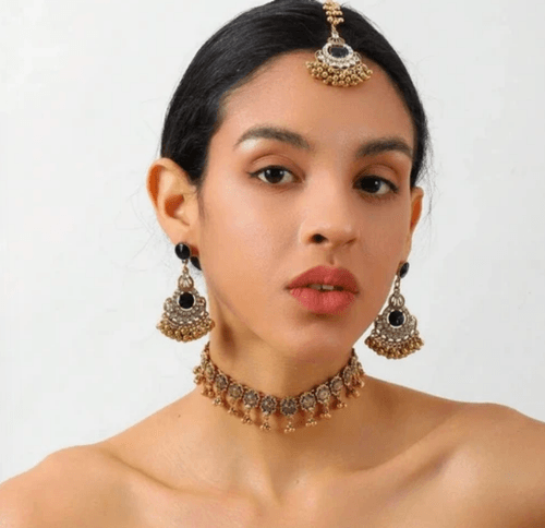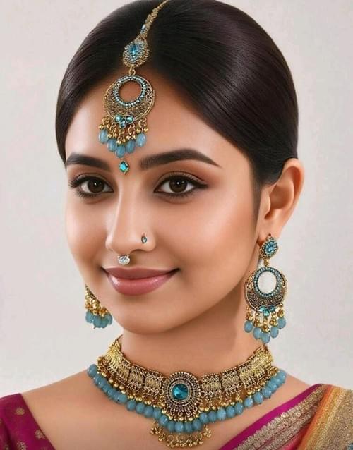 4pcs/Set Styles (Teal, Red, Blue, Black) Maang Tikka Jewelry Set