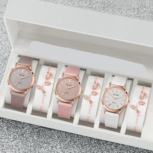 6pcs/Set Women's Quartz Watch+Bracelet Combination Set