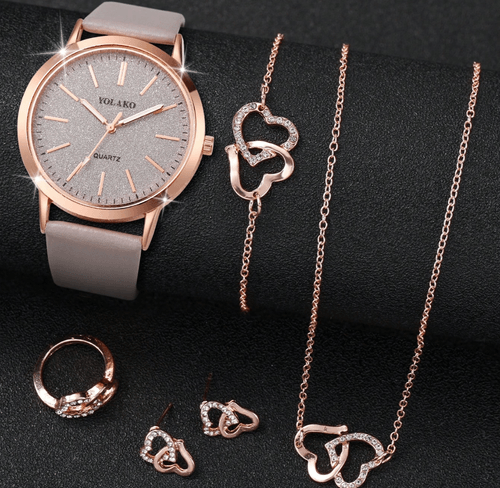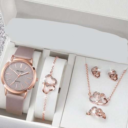 6pcs/Set Wrist Watch + Heart Shaped Jewelry Set