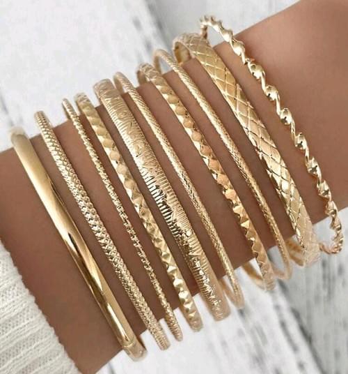 10pcs/Set Fashionable Multi-Layered Retro Twisted Bangle (gold, silver) (CN0048)