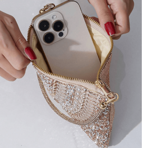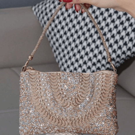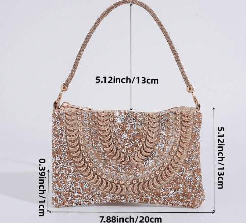 Champagne Rhinestone Decor Square Handbag, Evening Clutch Bag