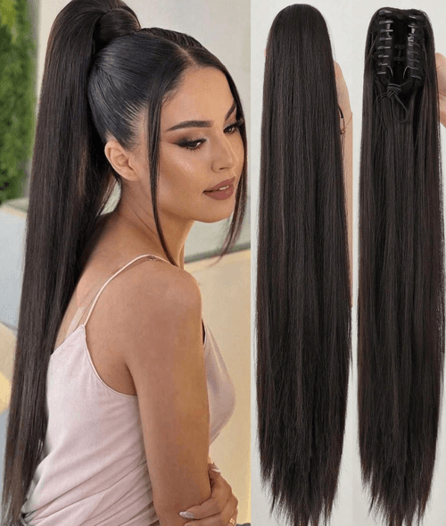 Long Straight Claw Ponytail Extension (Black, Ombre)