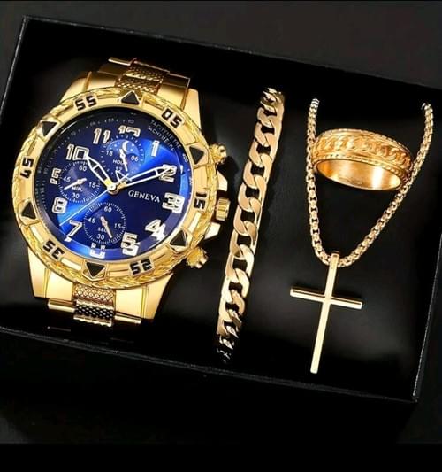 Men's Stainless Steel Gold and Blue Watch set