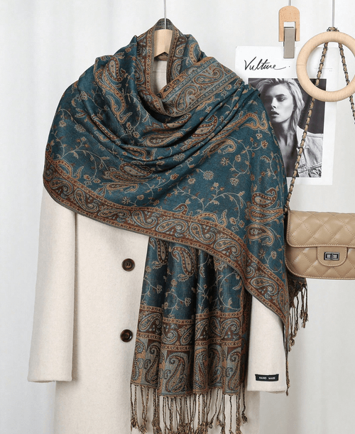 Paisley Pattern Embroidered Boho Pashmina Scarf (Camel, Army Green)