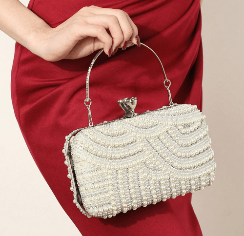 Pearl Studded Bag and necklace Set ( Silver, Gold)