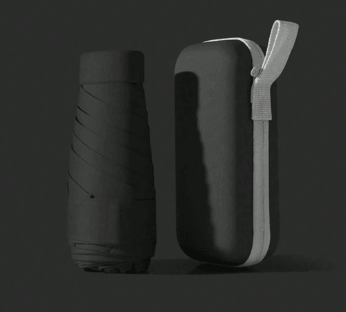 Pocket-Sized Waterproof Folding Umbrella with Case (Pink, Black)