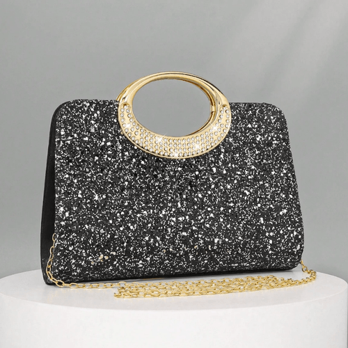 Sparkling Crystal Evening Clutch Bag (gold, black)